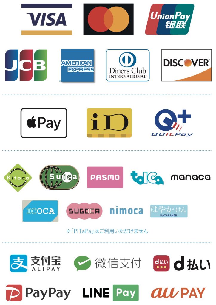 各種クレジット、電子マネーが使えます。不要な接触を避ける為にもお勧めです。